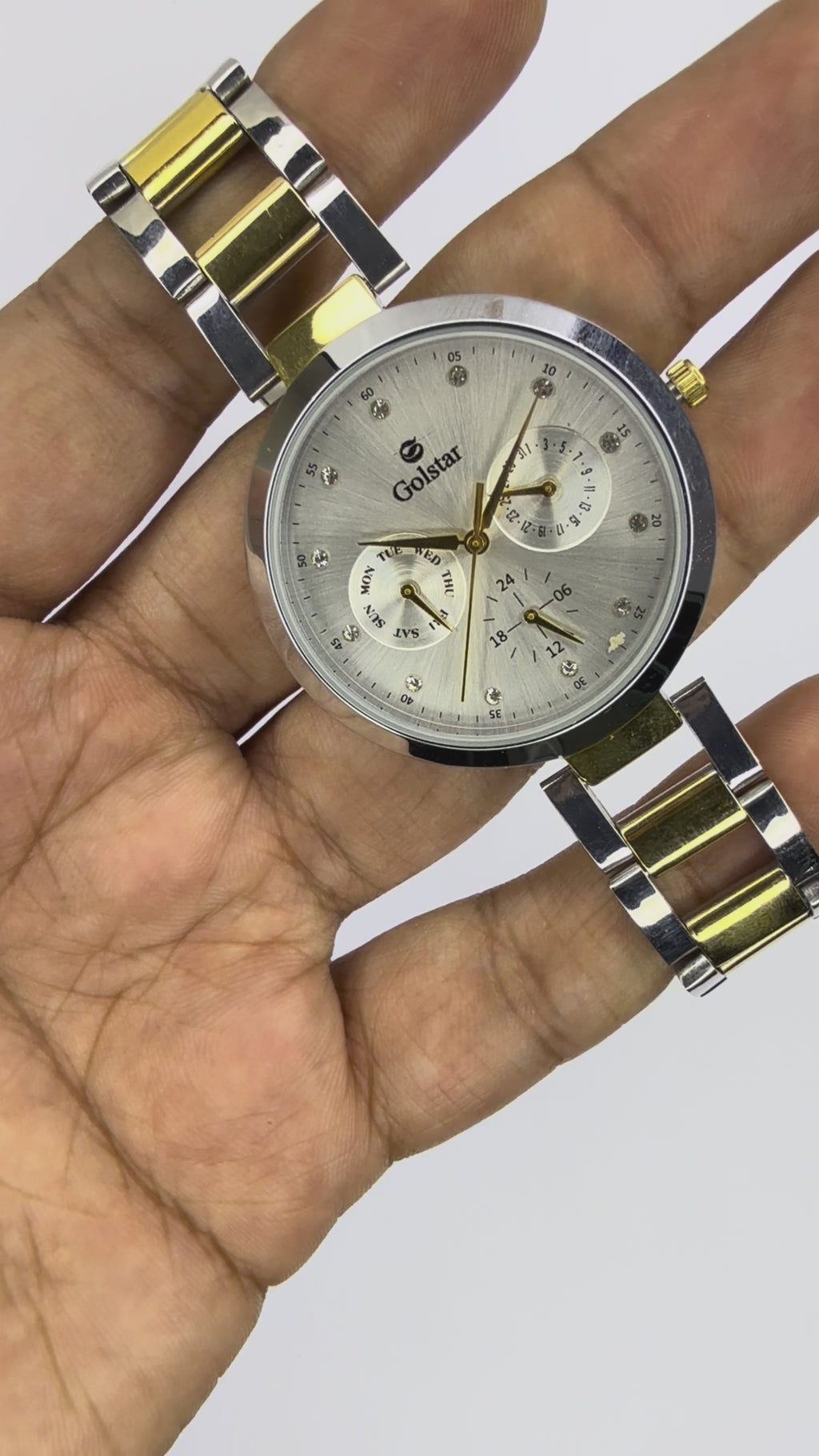 A premium two-tone steel watch with multifunction dials, perfect for formal, business, and smart-casual looks.